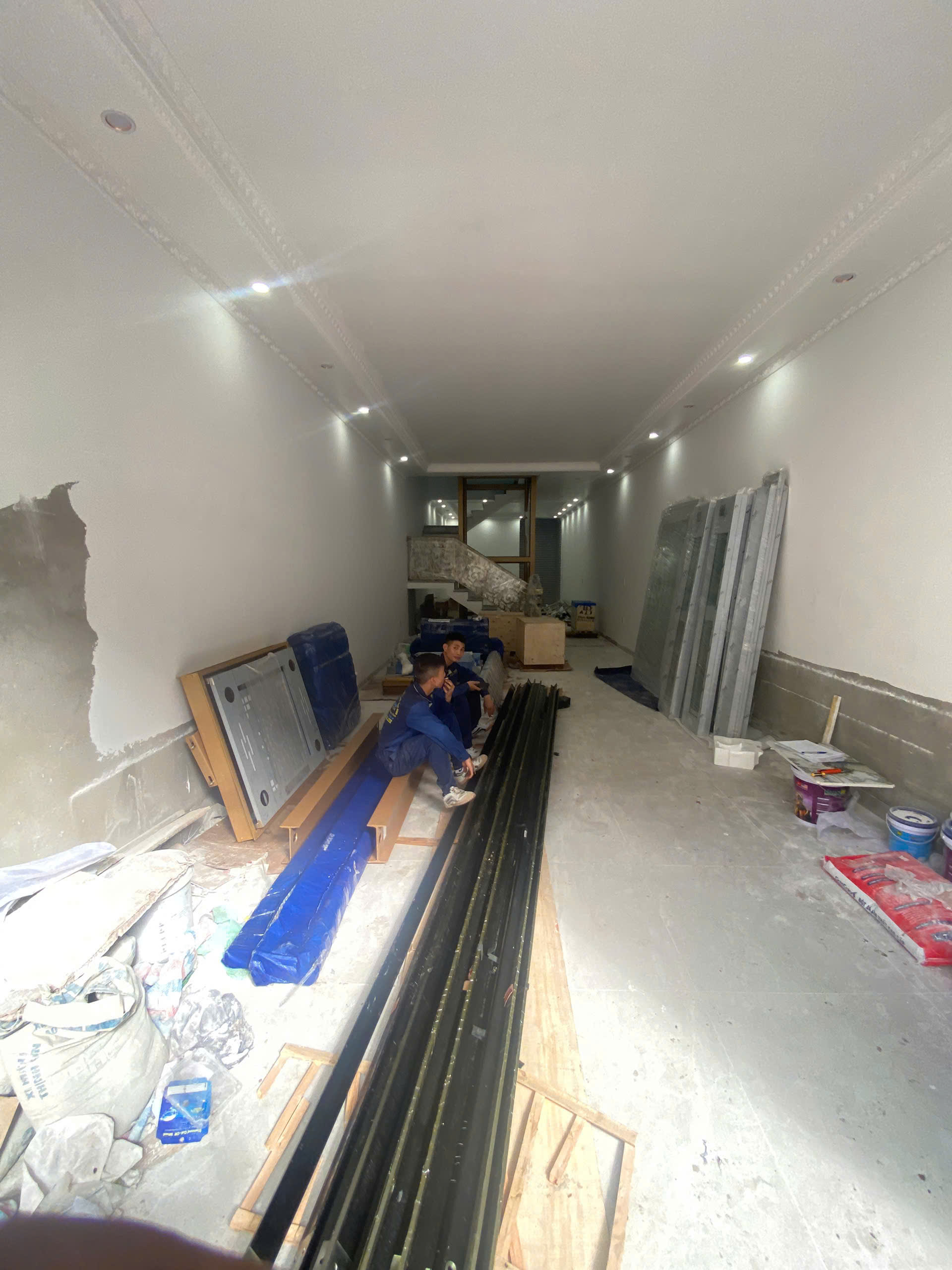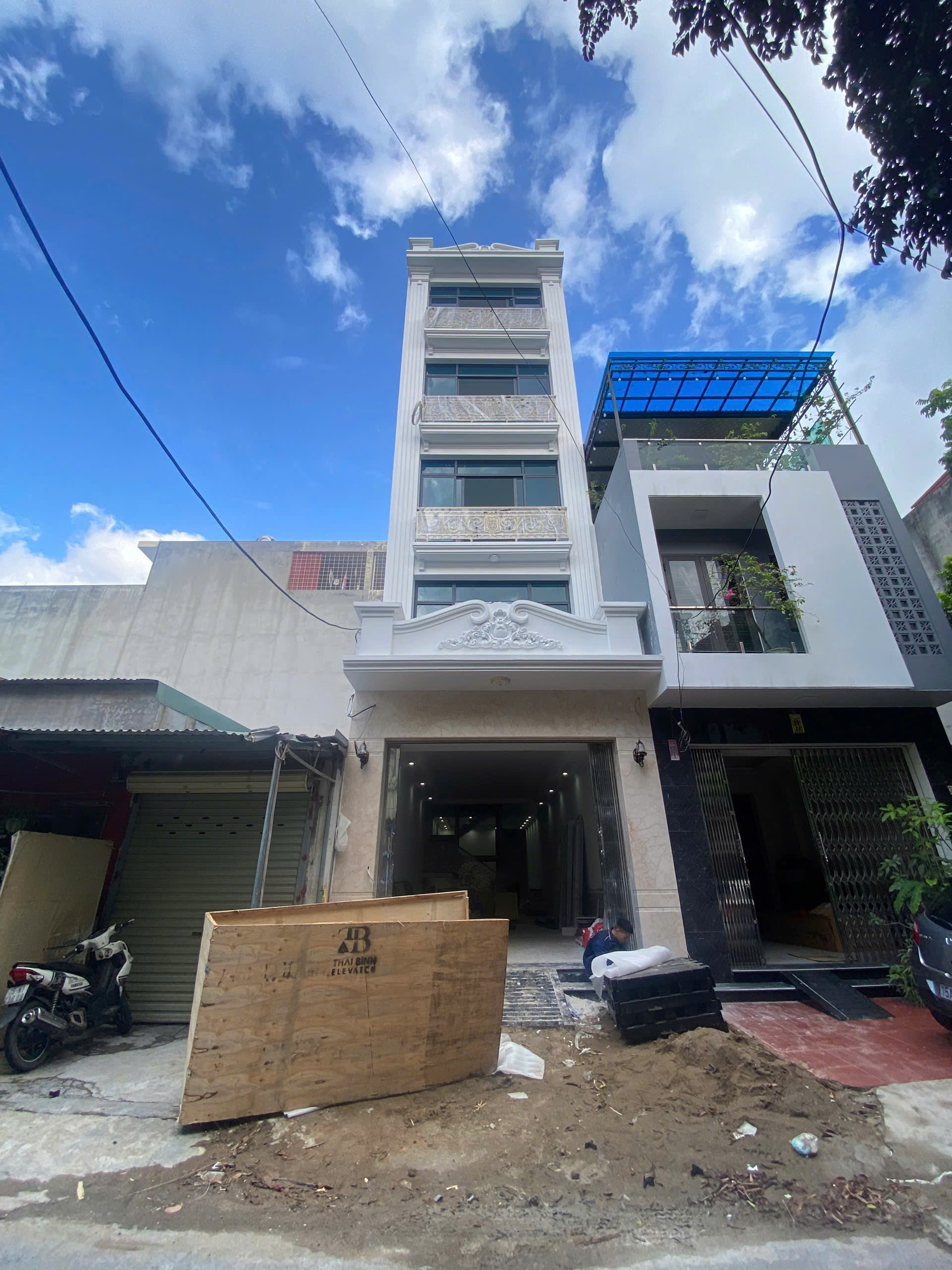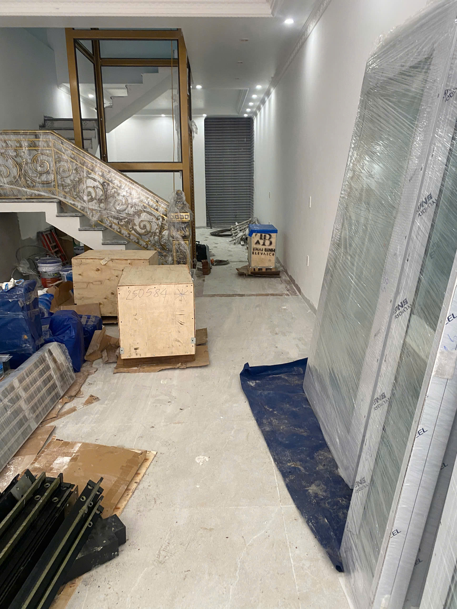 Đưa thiết bị thang máy về công trình nhà Anh Cường tại Ngô Kim Tài, Lê Chân, Hải Phòng để lắp đặt : Thang máy kính 450kg, 5stop, tốc độ 60m/p , Thiết bị chính Máy kéo + tủ điện ngoại Nhập hãng Fuji.